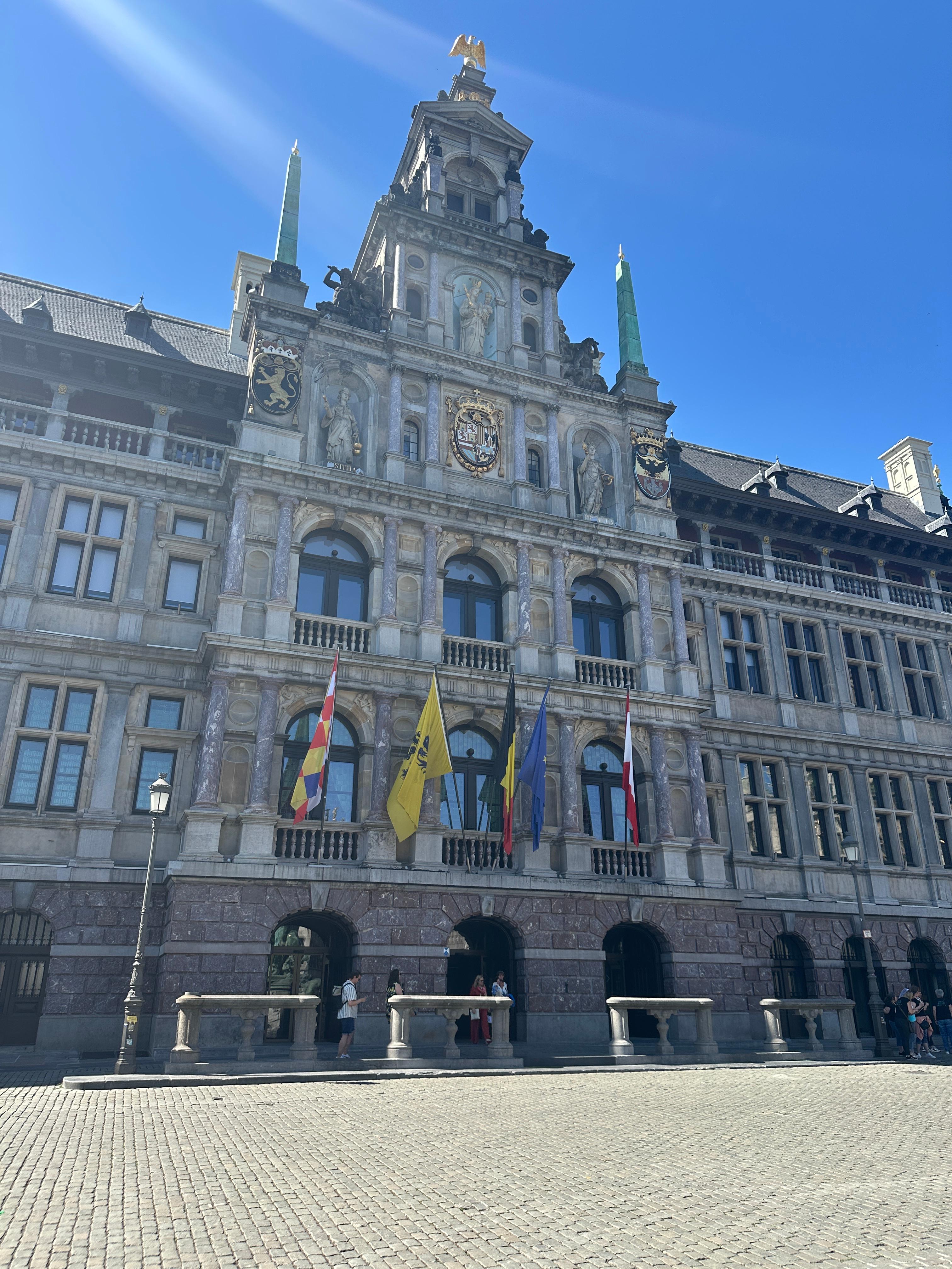 앤트워프 시청이다. 다양한 국가 깃발이 있는 점이 인상 깊었다.